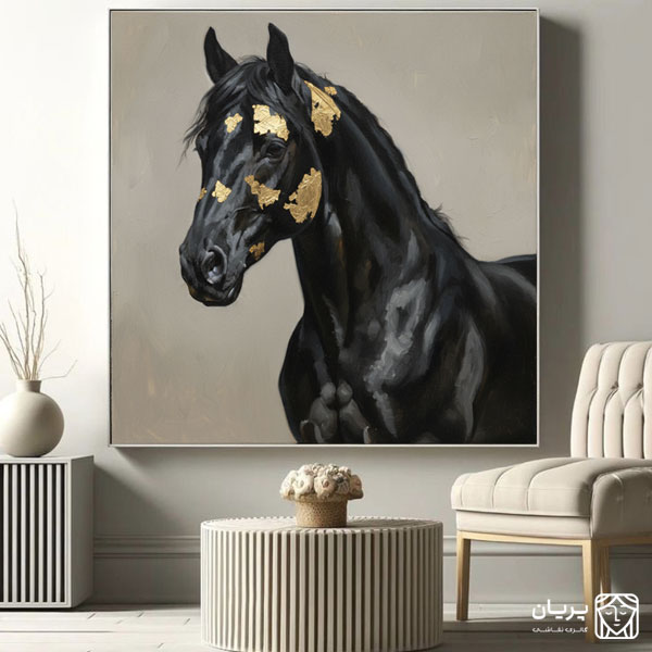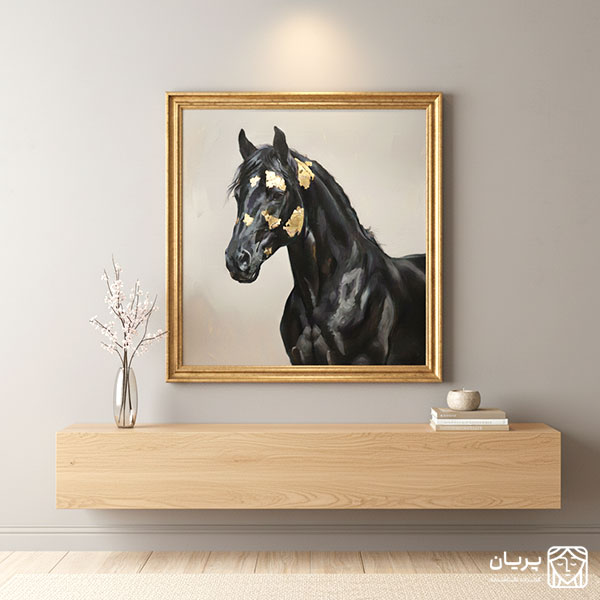 در پهنای این بوم، روح اصالت در تاریکی به تصویر کشیده شده است؛ اسبی سیاه، با شکوه و رام نشدنی، که نشانه هایی از طلا همچون ستارگان بر فراز تاریکی شب، بر گستره وجودش میدرخشد. این اثر، روایتی بصری از قدرت پنهان، زیبایی ابدی و شکوهی است که در تضاد رنگ ها، معنایی تازه می یابد. هر تکه طلای نقش بسته بر پیکر اسب، نه تنها جلوه ای از ارزش و تجمل است، بلکه نمادی از نور امید و درخشش جاودانه در دل هر چالش و تاریکی محسوب می شود. این تابلو، فراتر از یک نقاشی، دعوتی است به تأمل در زیبایی های عمیق و اصیلی که در هم نشینی قدرت و ظرافت شکل میگیرد.