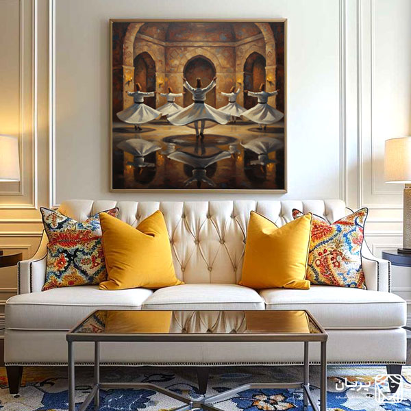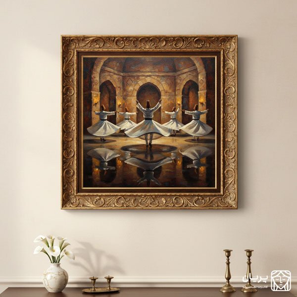 تابلو نقاشی رقص سماع دلدادگان، با الهام از آیین عرفانی سماع، لحظه‌ ای از غرق شدن در شور و نیایش را به تصویر می‌کشد. در فضایی با معماری کهن و نورپردازی دلنشین، درویشان با حرکت هماهنگ خود، همچون ذراتی چرخان در عالم هستی، به سوی کمال گام برمی‌ دارند. انعکاس آنها بر سطحی آرام و درخشان، عمق این تجربه روحانی را دو چندان می‌کند و بیننده را به تامل در معنای حضور و تعالی دعوت می‌کند. تابلو نقاشی رقص سماع دلدادگان، نه تنها یک تصویر، بلکه پنجره‌ ای به سوی آرامش درونی و وحدت با هستی است.