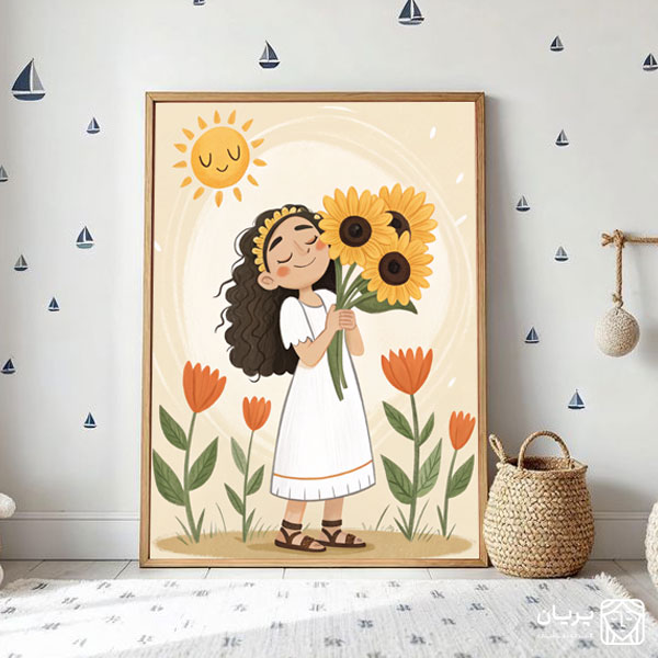 تابلو نقاشی کودکانه دختر آفتابگردان